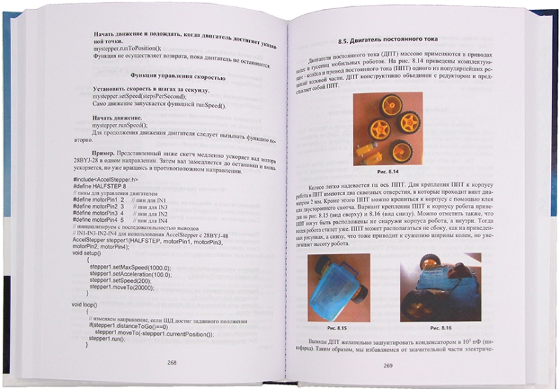 Рассмотрены вопросы проектирования компьютерных систем управления на основе контроллеров (плат) семейства Arduino. Проведена классификация устройств, входящих в систему управления – контроллеры, датчики, исполнительные устройства, устройства индикации и сигнализации, беспроводные средства информационной коммуникации, и рассмотрен широкий спектр этих устройств. Даны сведения о среде программирования Arduino IDE и описание языка программирования контроллеров Arduino в этой среде. Приведен алгоритм работы контроллерной системы управления с учетом обмена информацией по каналам информационных коммуникаций. Особое внимание уделяется рассмотрению вопросов организации беспроводных каналов обмена информацией. Книга содержит большое количество примеров программирования – скетчей, которые в значительной степени иллюстрируют представленный материал. Для студентов вузов, занимающихся изучением роботов, робототехнических комплексов, контроллерной техники, технического программирования, инфокоммуникационных технологий в промышленной среде. Может быть использовано при курсовом и дипломном проектировании для разработки цеховой и заводской транспортной структуры и различных безлюдных логистических систем. Будет полезно для специалистов-практиков, занимающихся разработкой беспилотных транспортных средств различного назначения, любителей, занимающихся проектированием МР и дронов, в кружках робототехники.